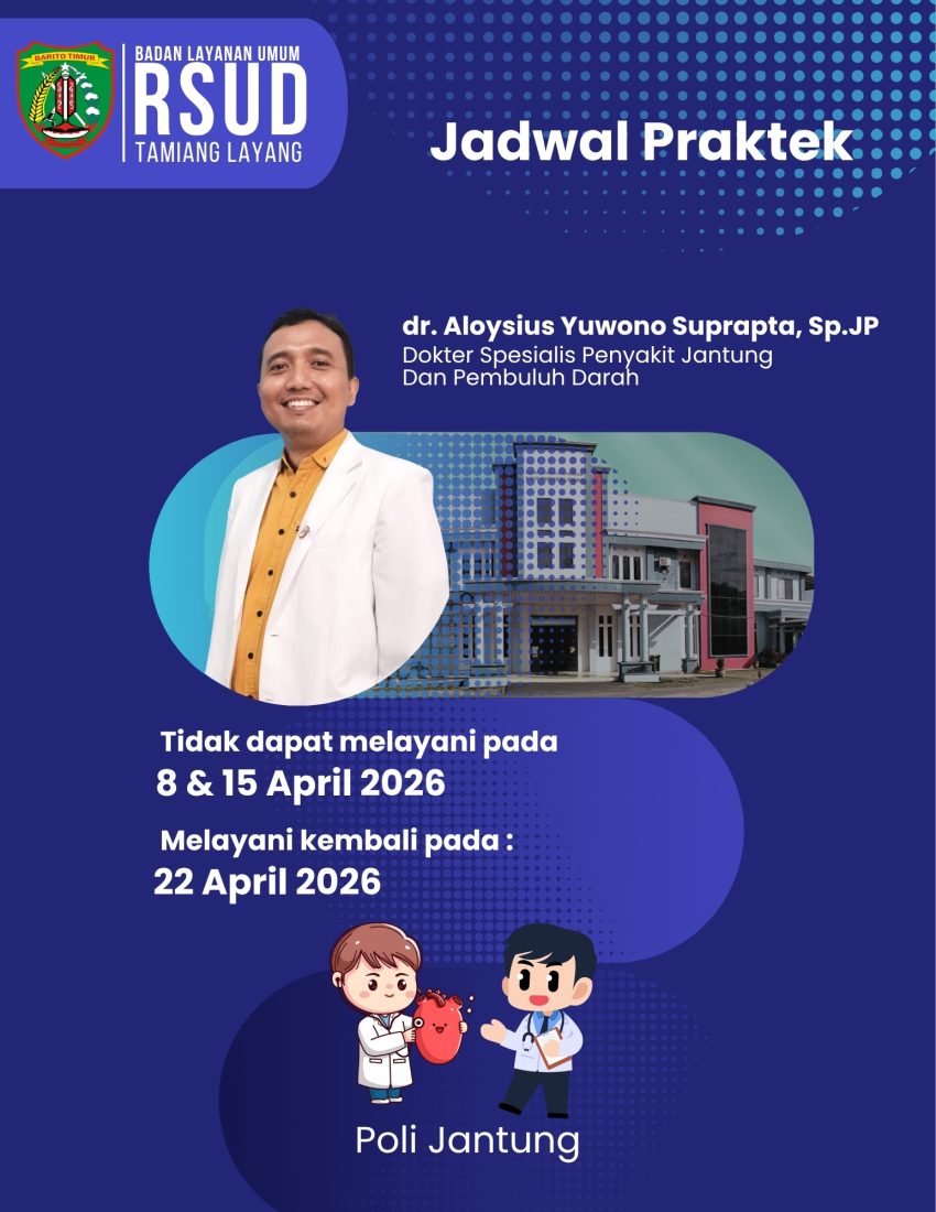 Hallo hengau sehat, mohon ijin kami sampaikan, bahwa Dokter Spesialis Penyakit Jantung dan Pembuluh Darah tidak berpraktek pada 8 & 15 April 2026. Melayani kembali 22 April 2026. Posted on 06/04/202607/04/2026 by Admin.Rsud Bagikan :